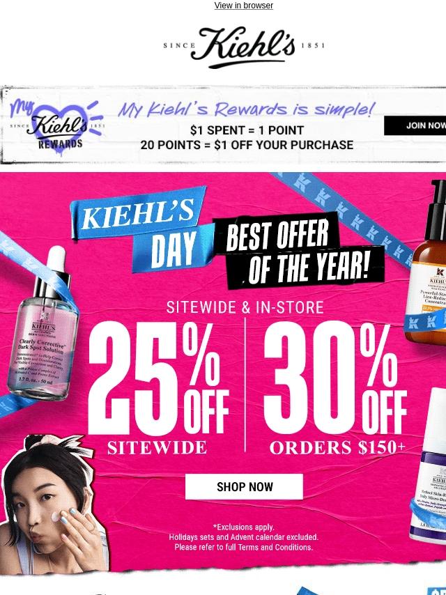 Kiehl's Day: Up to 30% off + gift with $...