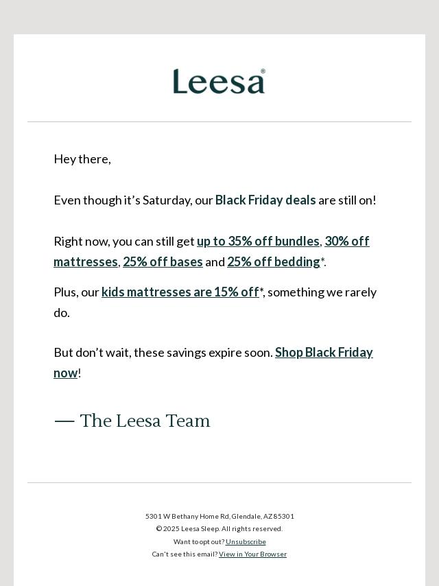 Emails from leesa.com: