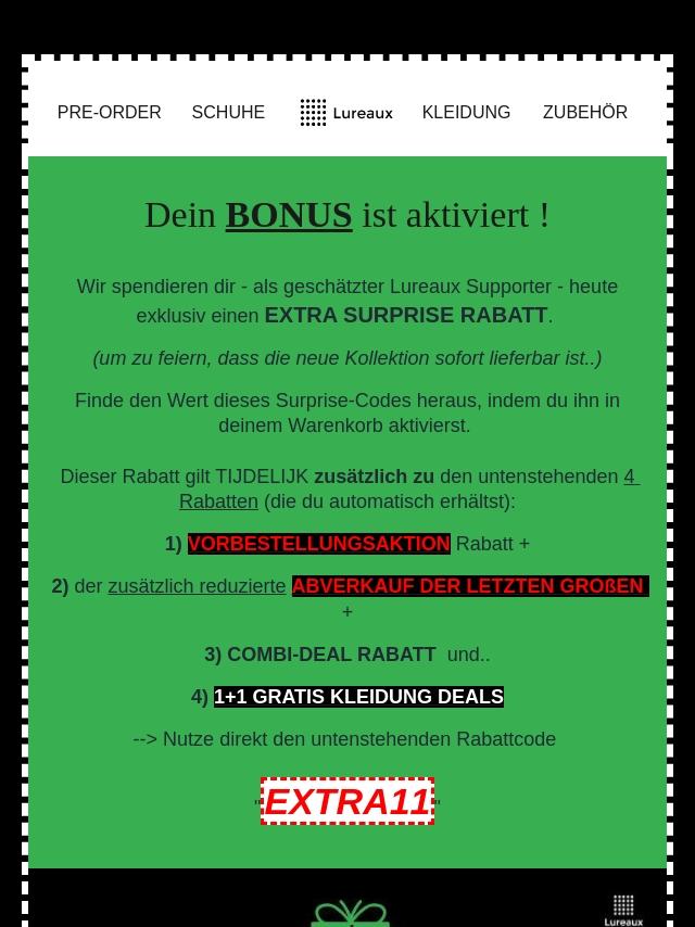 🎉 Dein Code "EXTRA11" ist aktiviert