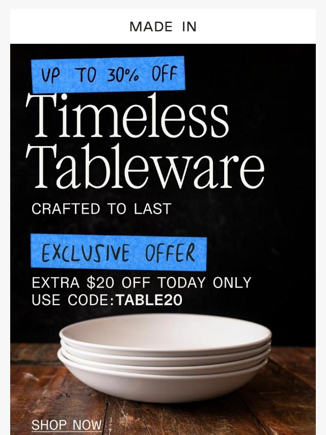 🚨 Price Drop: Up to 30% Off Tabletop