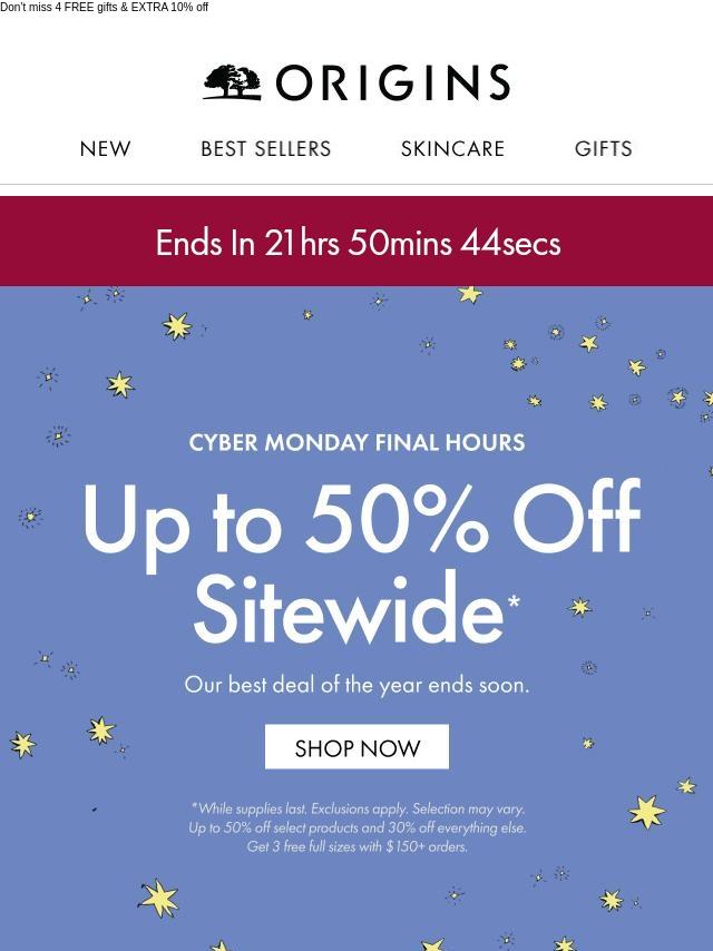 4 free gifts + up to 50% off everything