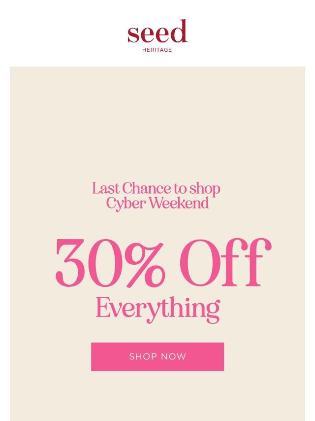 Must End Monday: 30% Off Everything!