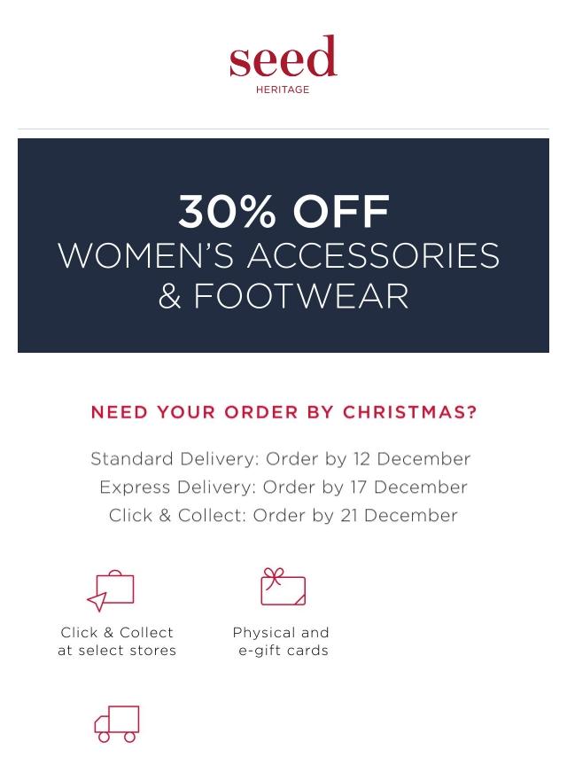 30% Off Women’s Accessories & Footwear