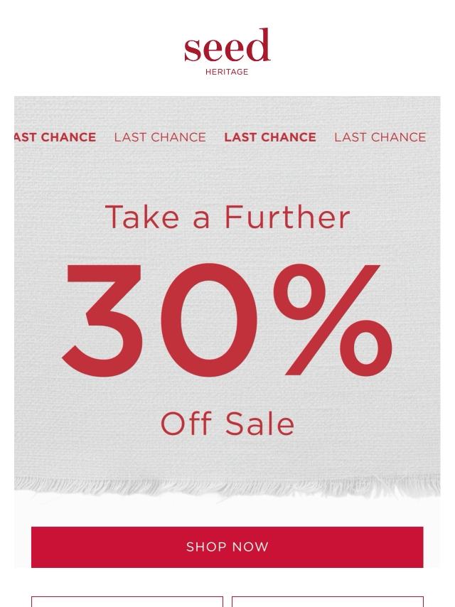 Last Chance! Take a Further 30% Off Sale...