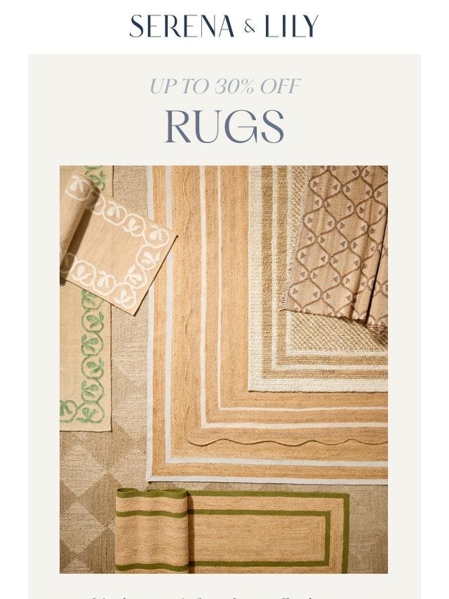 Up to 30% off rugs starts now.