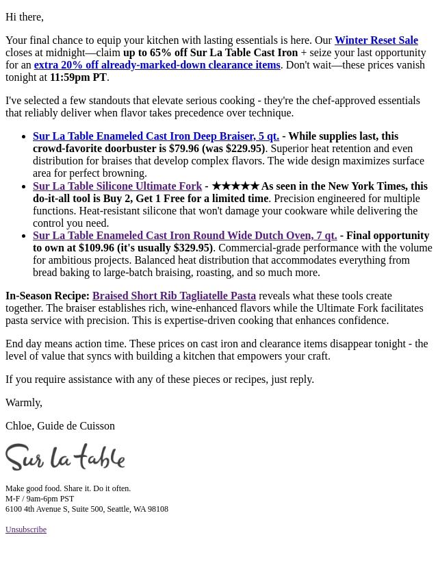 Emails from Sur la Table: