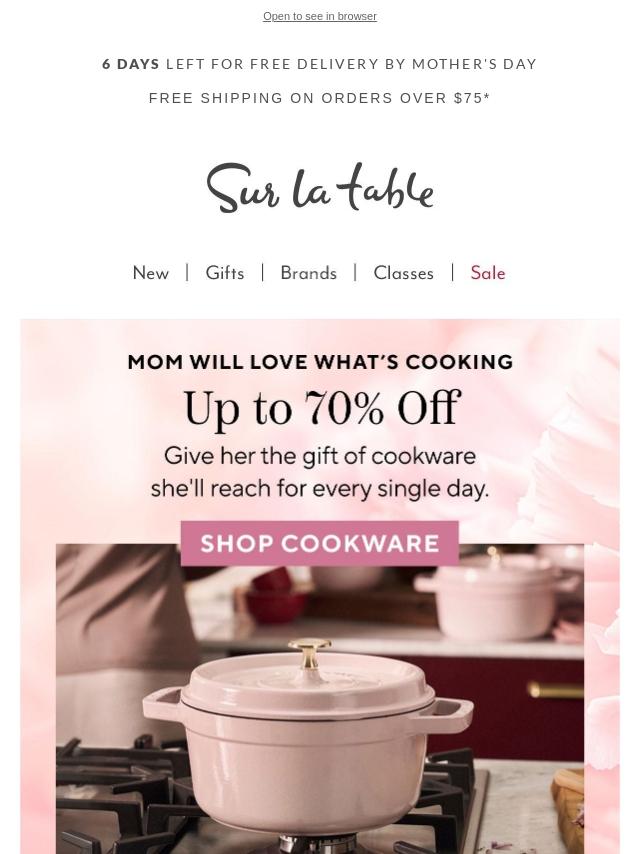 Up to 70% off cookware Mom will love.