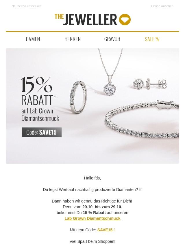 Spare 15 % Rabatt auf Schmuck fΓΌr Deine...
