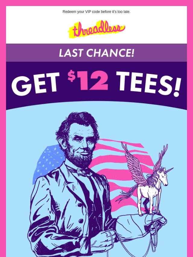 $12 Tees. Limited time. Act accordingly.