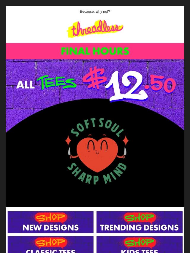 Final Hours: Load up on $12.50 Tees!