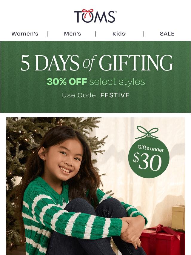 5 Days of Gifting Starts Now! Save 30%.