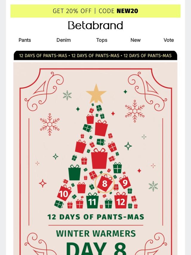 On the first day of Pants-mas, Betabrand...