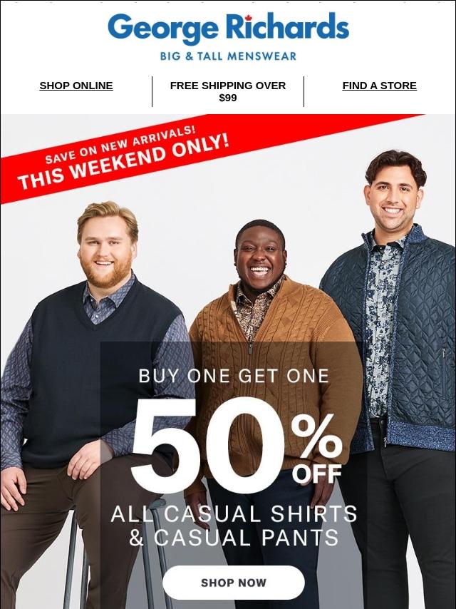 BOGO 50: Casual shirts & pants starts no...