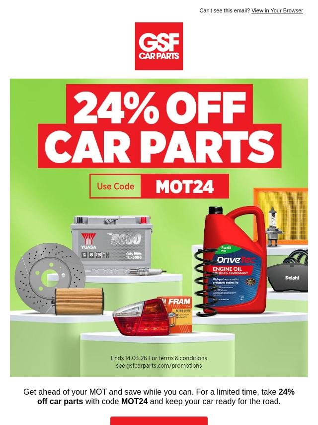 Save 24% on Parts Before Your MOT