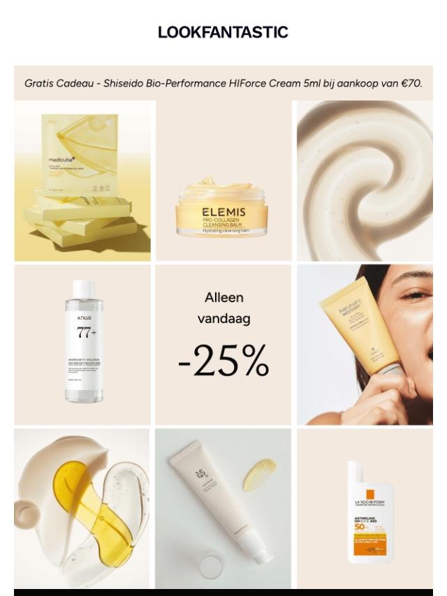 25% korting & een Shiseido cadeau!