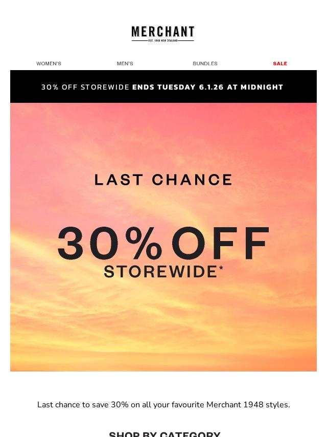 30% Off Storewide Ends Soon!
