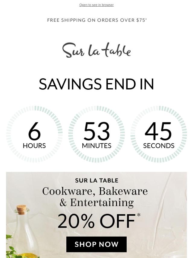 20% off Sur La Table essentials ends ton...