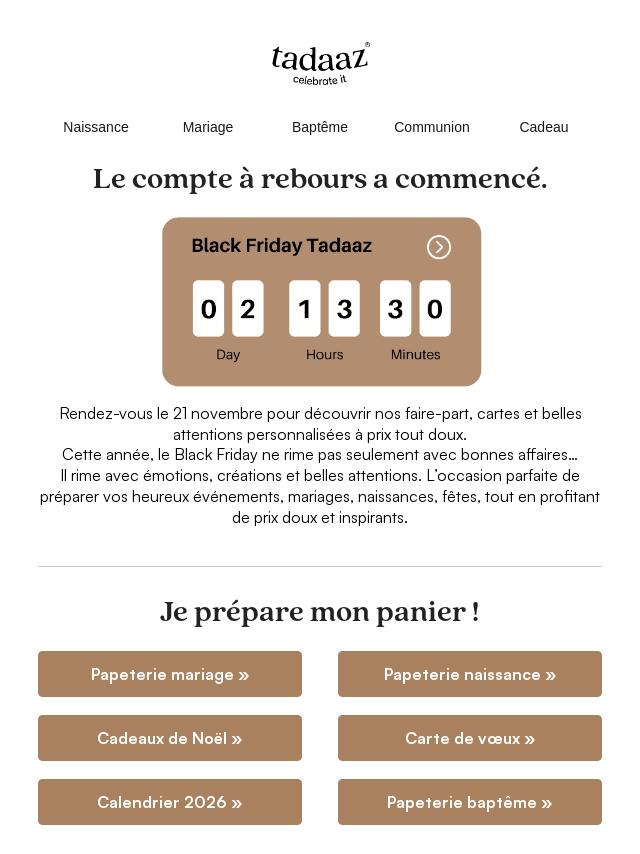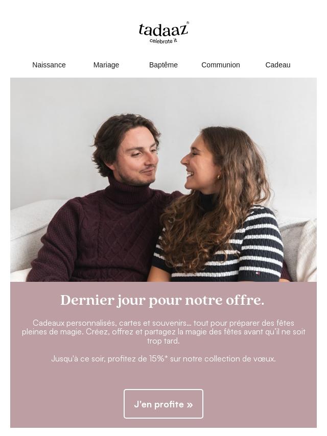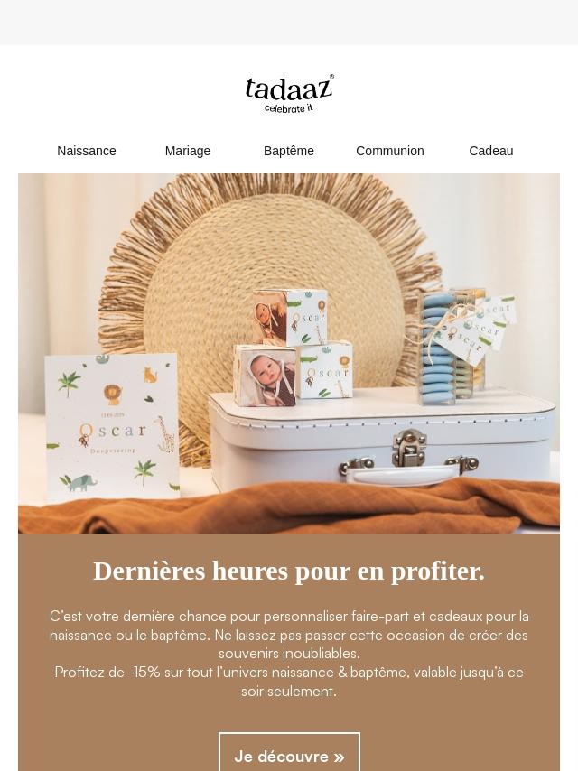 Last day : -15% sur Naissance & Baptême...