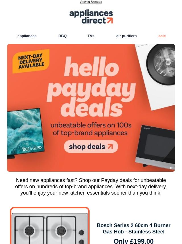 Payday deals on top appliances, shop now