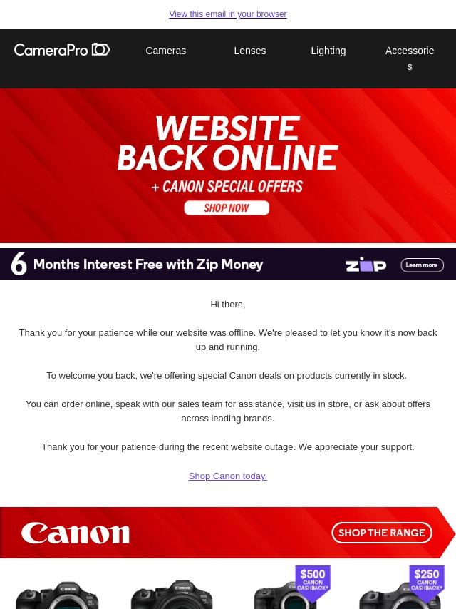 Our website is temporarily down, orders ...