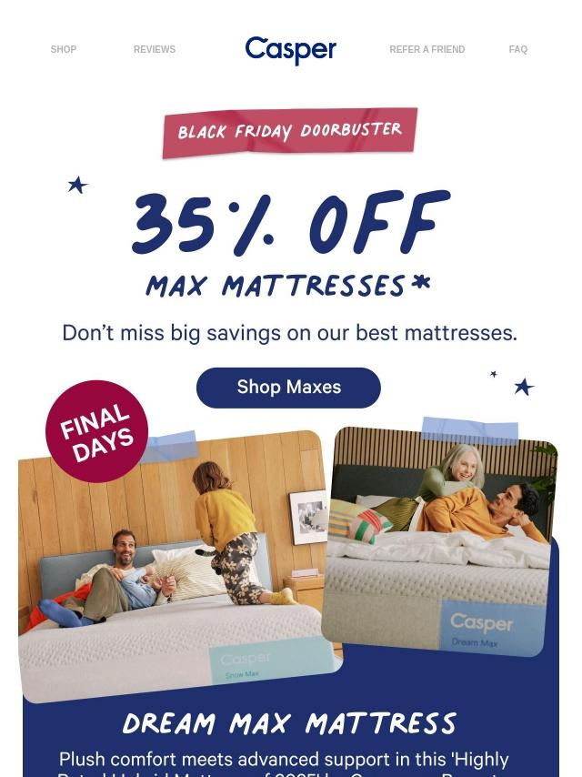 35% off Max mattresses + sitewide deals