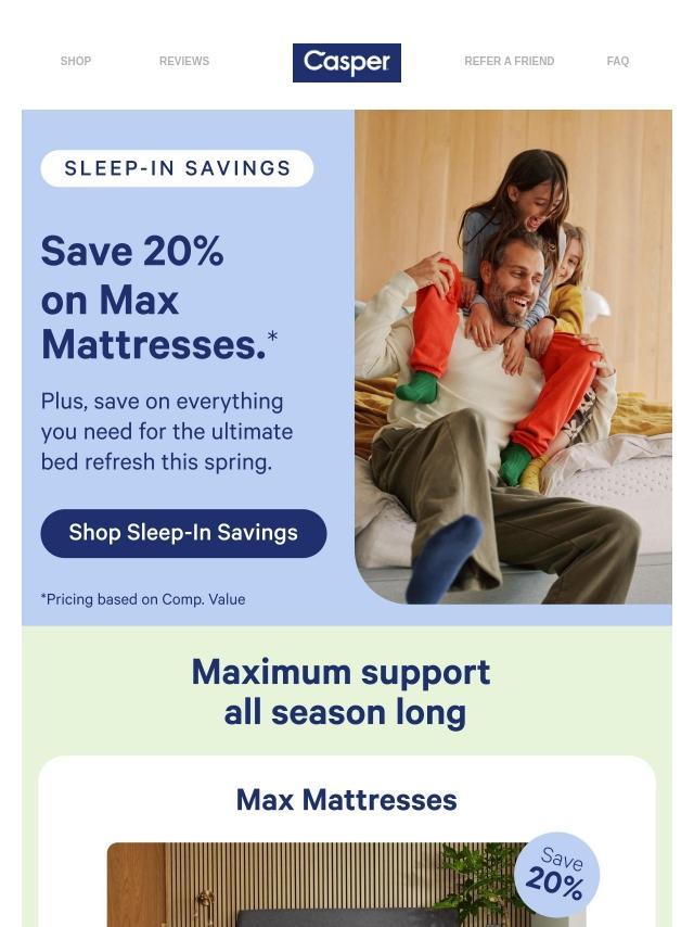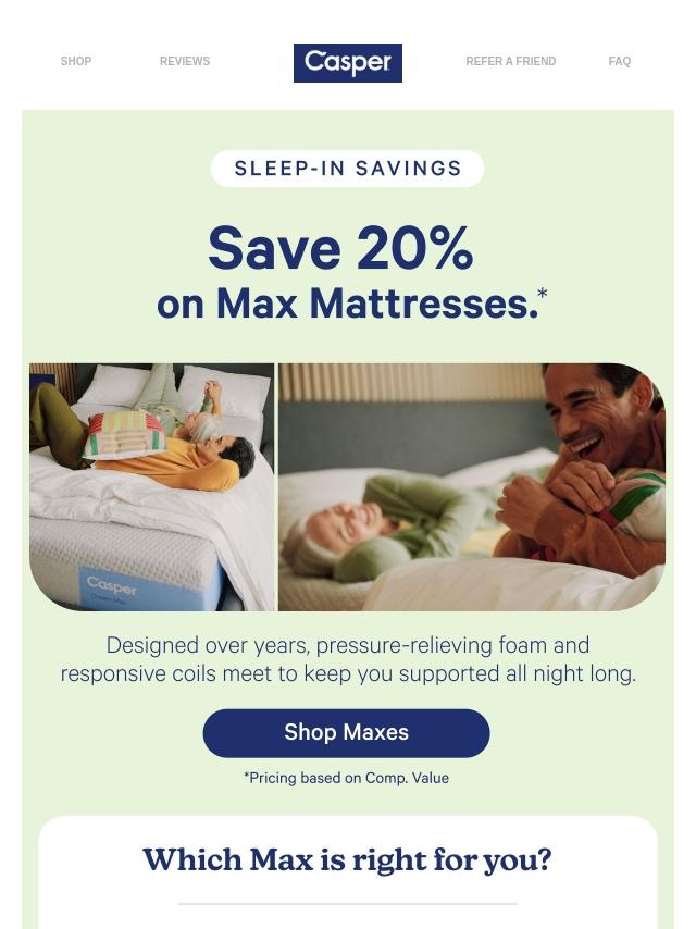 Save 20% on Max mattresses.*