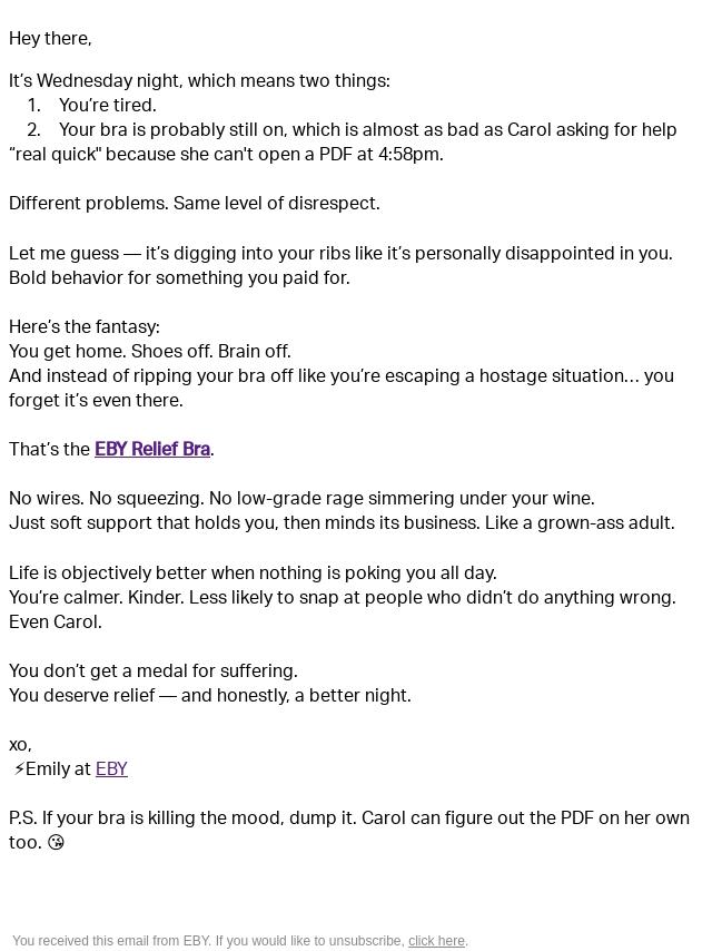 Work is slacking you. Your bra is squeez...