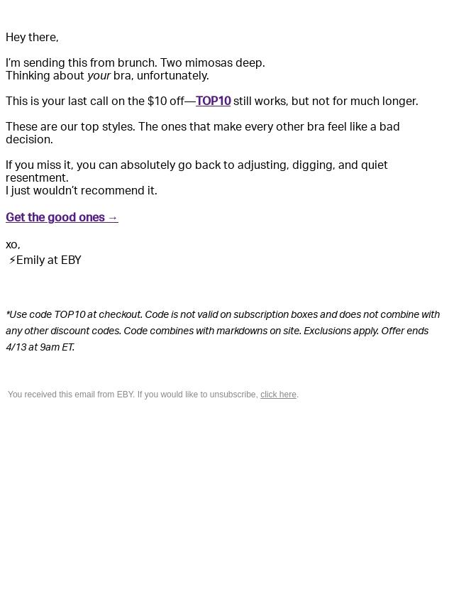 A Rare EBY Offer - $10 Off