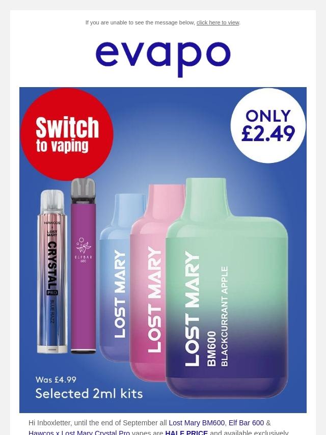 Half price Lost Mary & Elf Bar ends next...