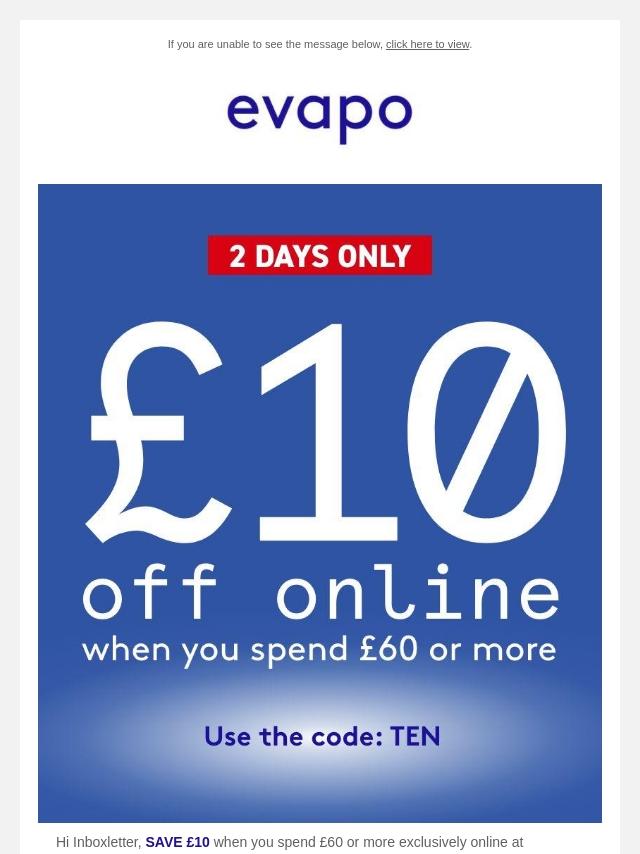 £10 off exclusively online - two days o...