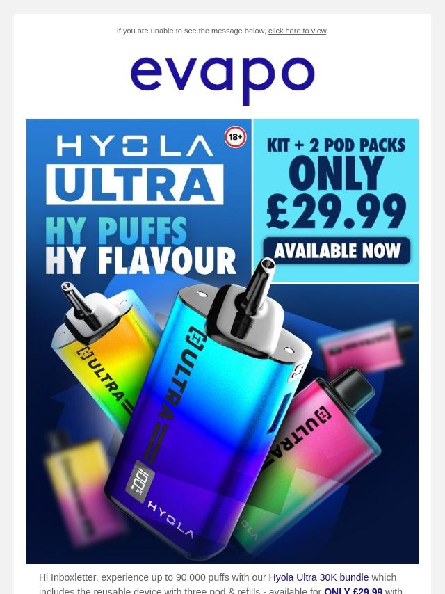 Up to 30,000 puffs with the Hyola Ultra ...