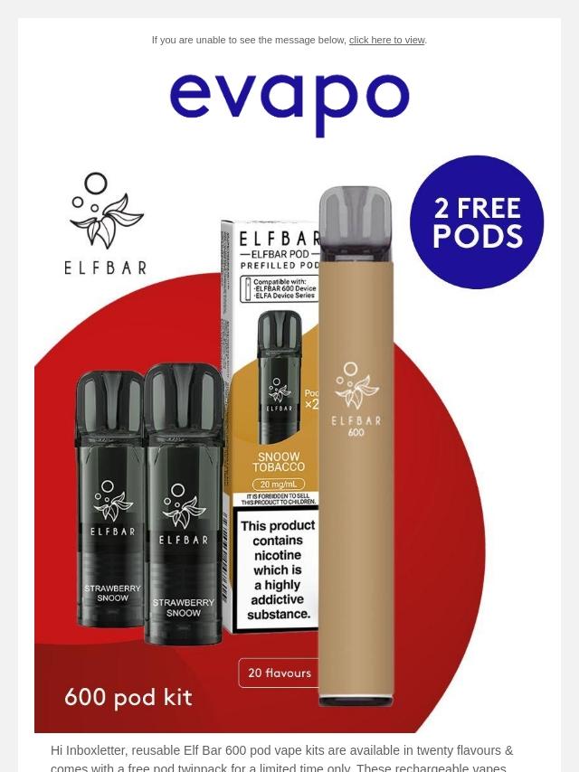 Free pod twinpack with Elf Bar 600 kits ...