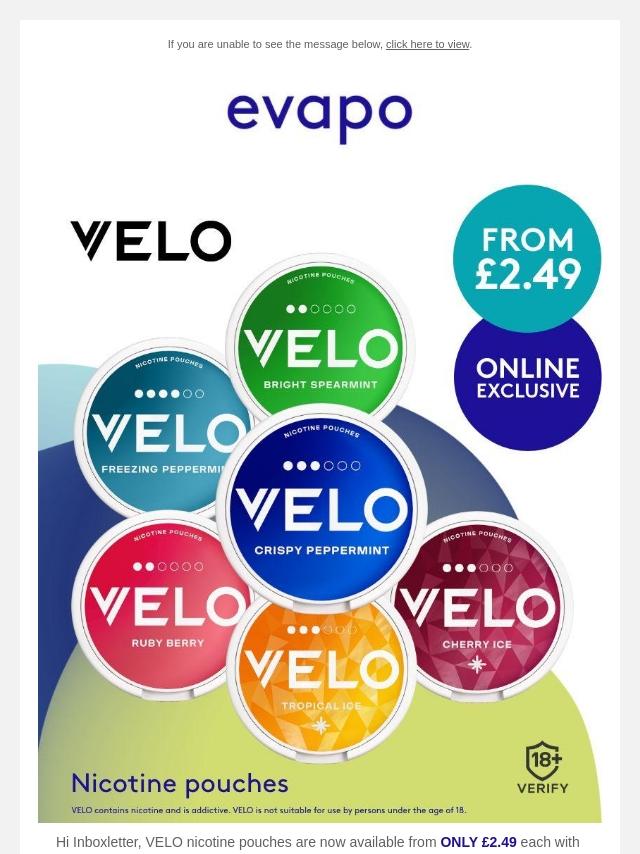 VELO nicotine pouches from only £2.49