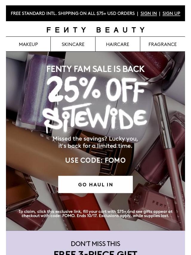 Emails from Fenty Beauty: