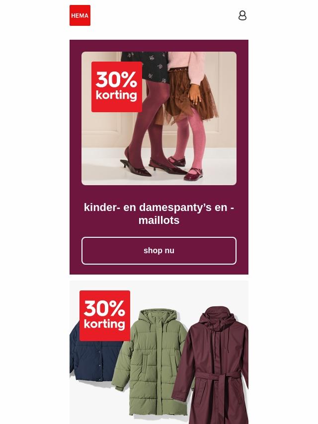 nu 30% korting op kinder- en damespanty'...