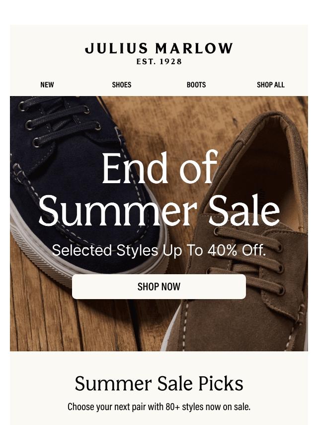 End of Summer Sale: Up To 40% Off