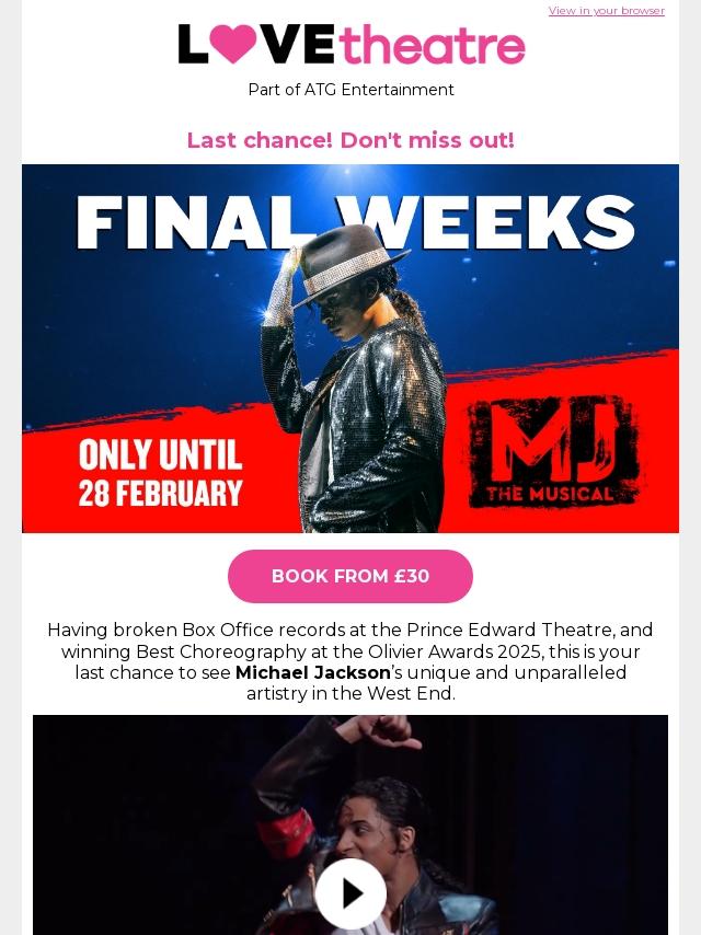 Last chance to see MJ The Musical in the...