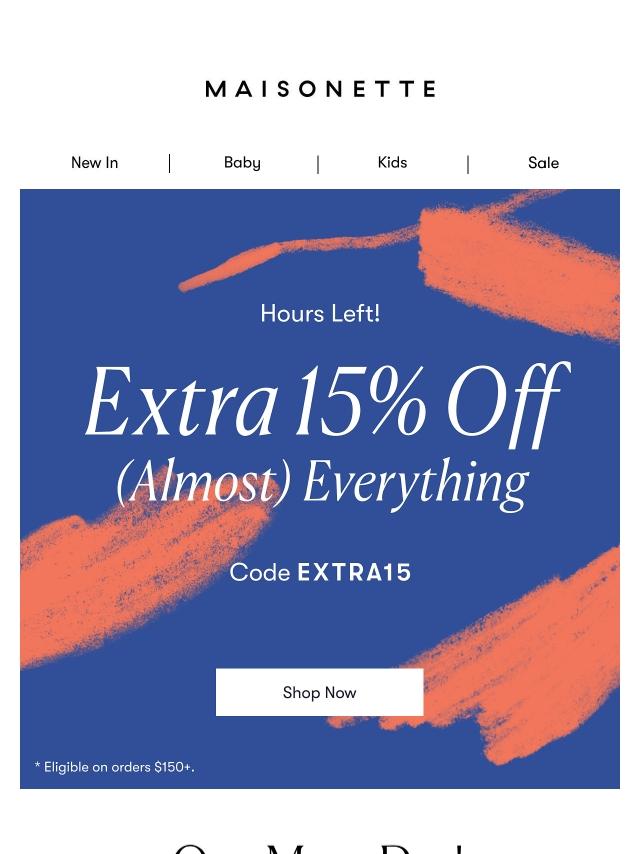 Final Hours! Extra 15% Off Ends Tonight