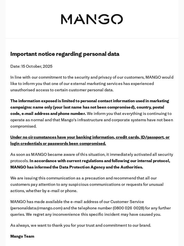 Important notice regarding personal data