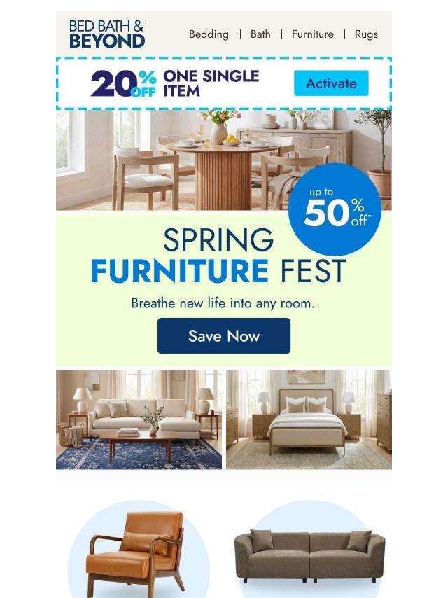 Up to 50% off furniture that refreshes a...