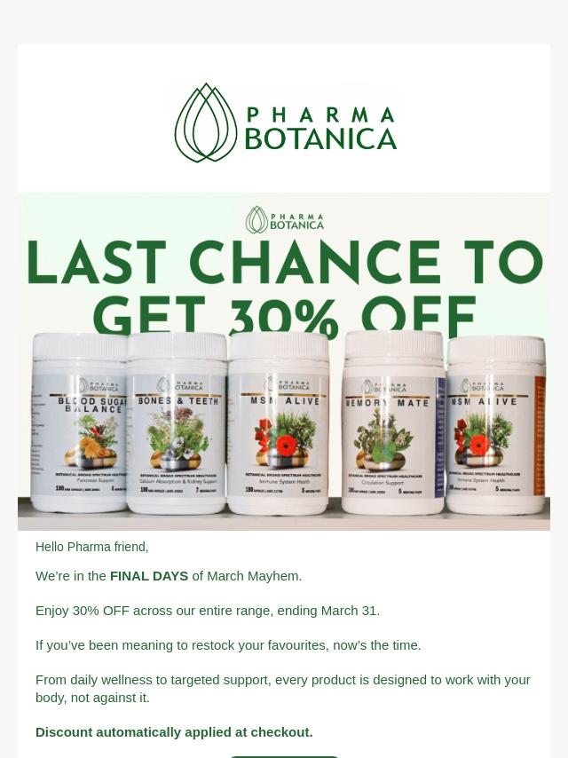 LAST CHANCE TO SHOP: 30% Off Pharma Bota...
