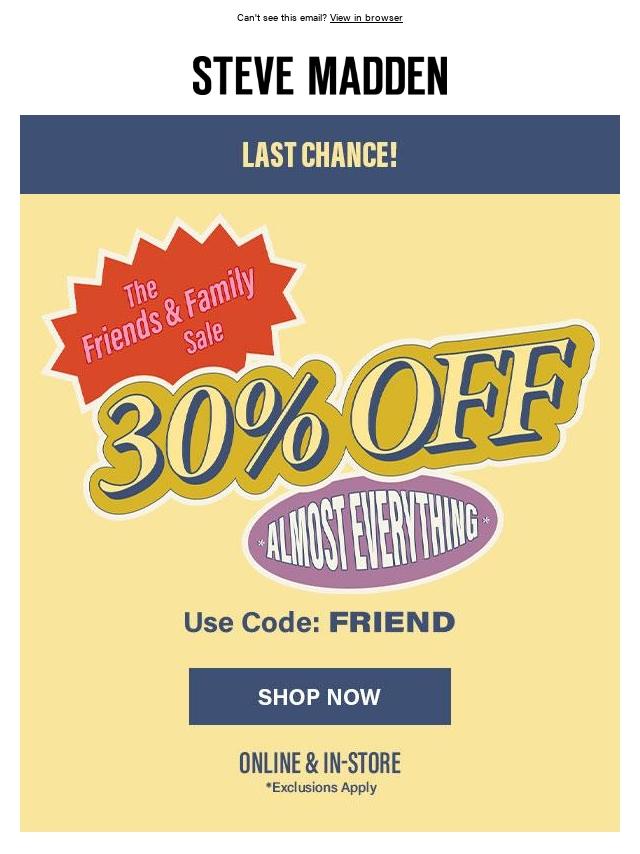 Final Hours: 30% Off Friends & Family
