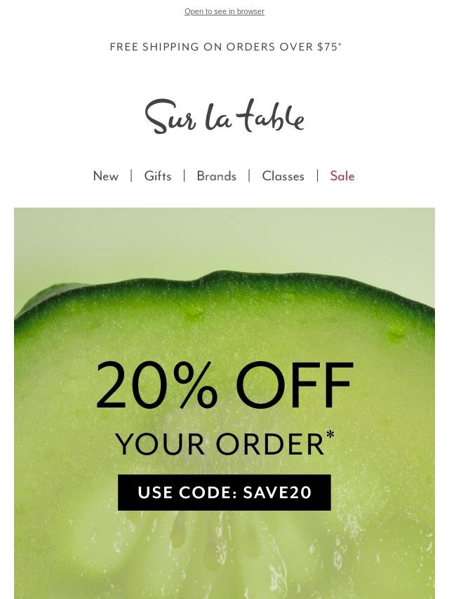 Cook like a chef with 20% off your order.*