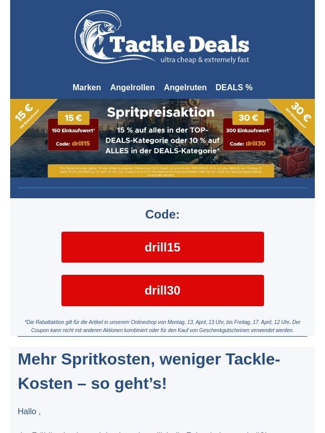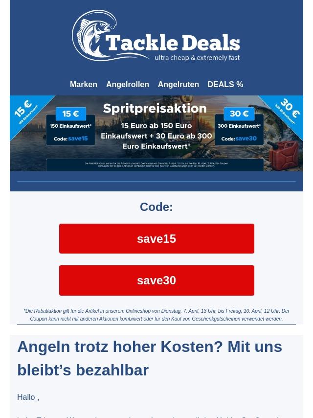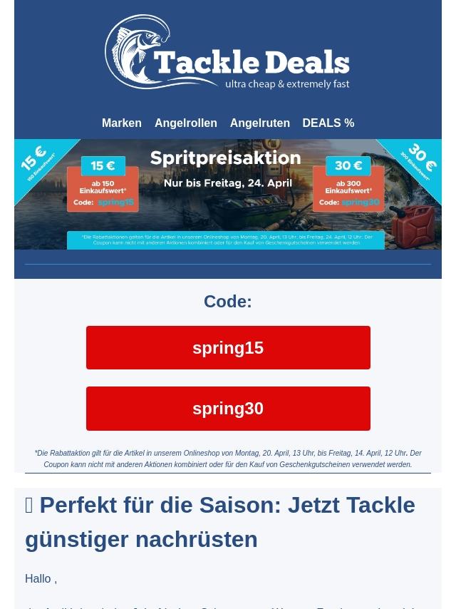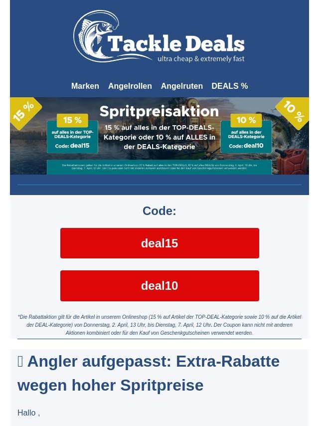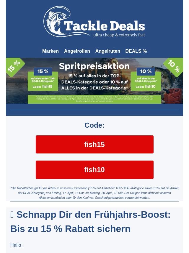 Frühjahrs-Boost für Angler: 15 % Rabat...