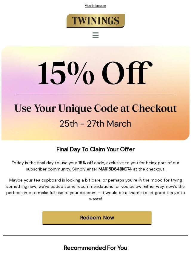 Emails from Twinings Teashop: