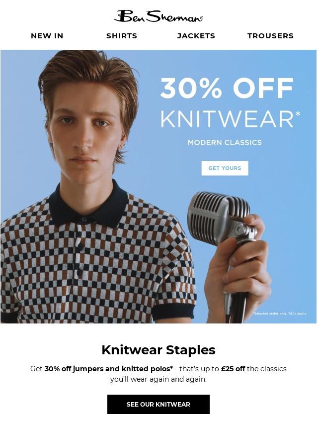 New: 30% off knitwear*