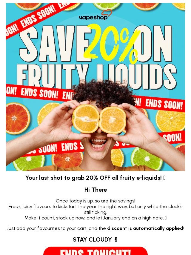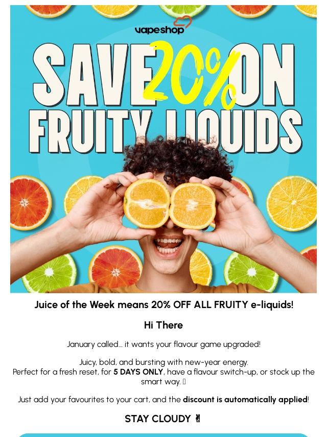 20% OFF Fruity E-Liquids! 🍓