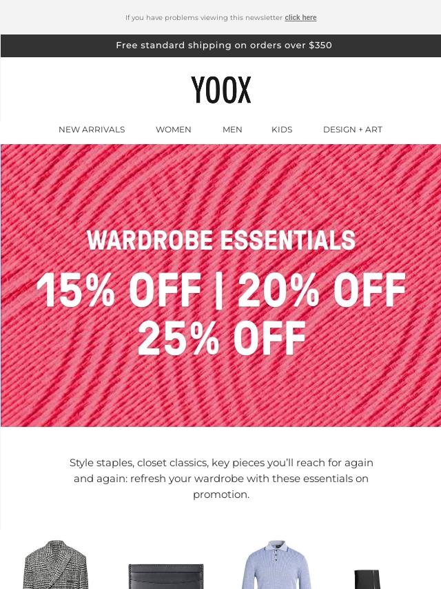 15%, 20% & 25% OFF wardrobe essentials!